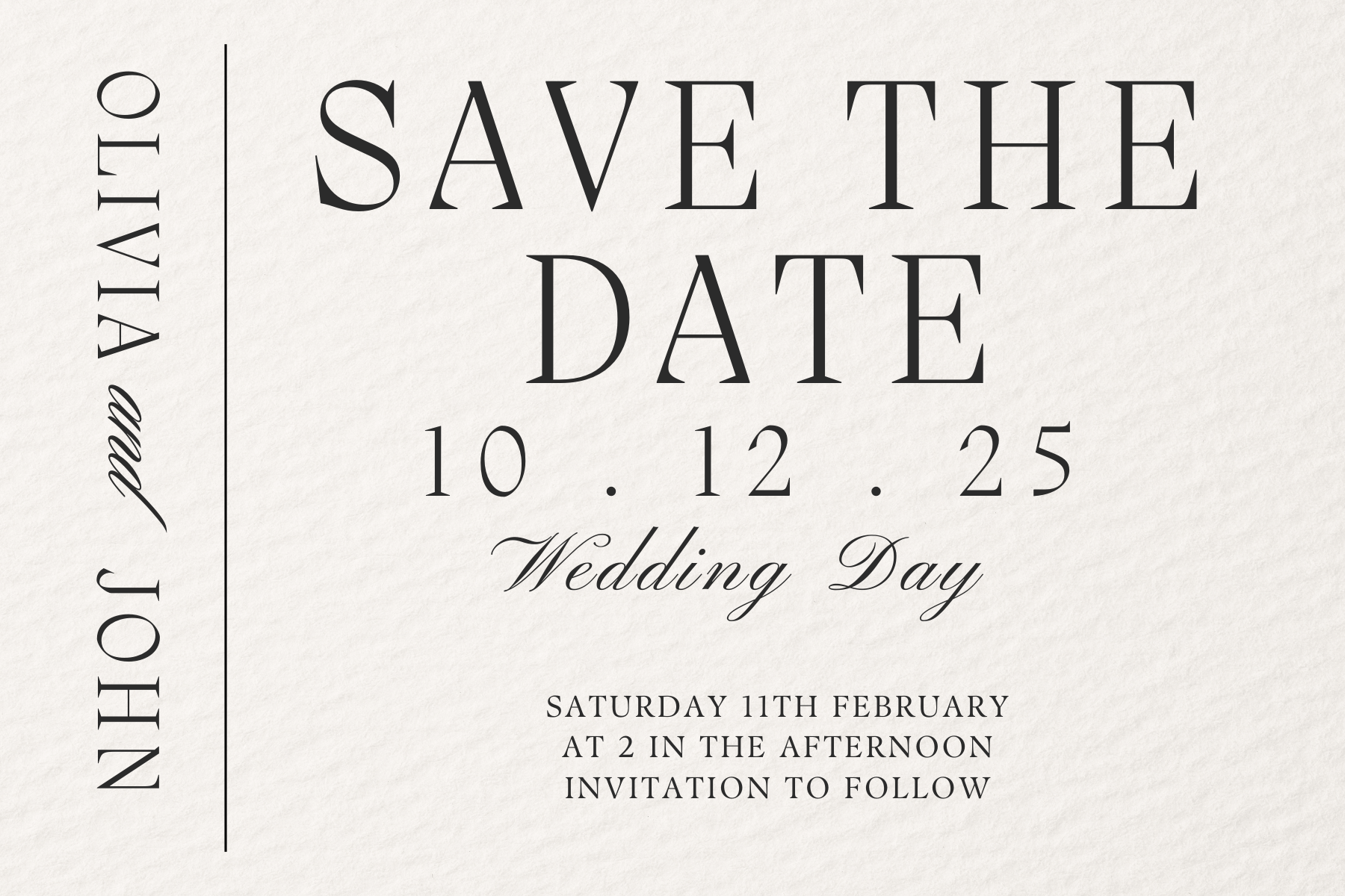 Announce the big day in style with this elegant Save the Date card. Designed to be simple yet eye-catching, this template is perfect for couples who want a modern and timeless look. Featuring clean typography and a spacious layout, it can be easily customized to suit any wedding theme.
